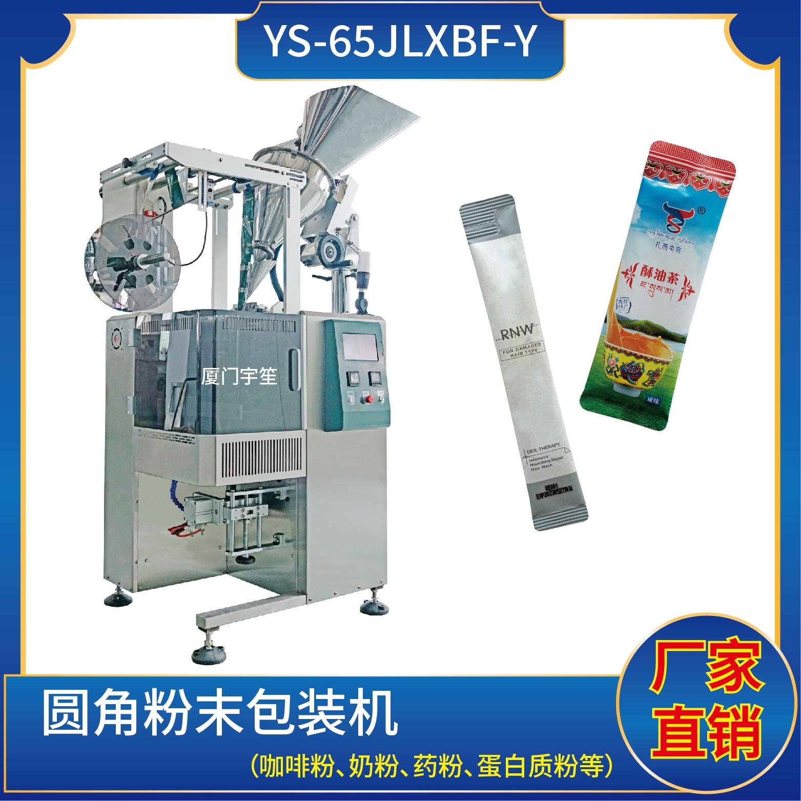 YS-65XAF-Y 三邊封圓角粉劑包裝機特 點 Characteristic1、適用于食品、醫(yī)藥、化工、化妝品行業(yè)中粉劑等物品的計量包裝。.The machine is suitable for the food, medicine, chemical industry, cosmetics industry of powder of measurement packing. 2、可自動完成制袋、計量、下料、封合、分切、計數(shù)、且可根據(jù)客戶要求…