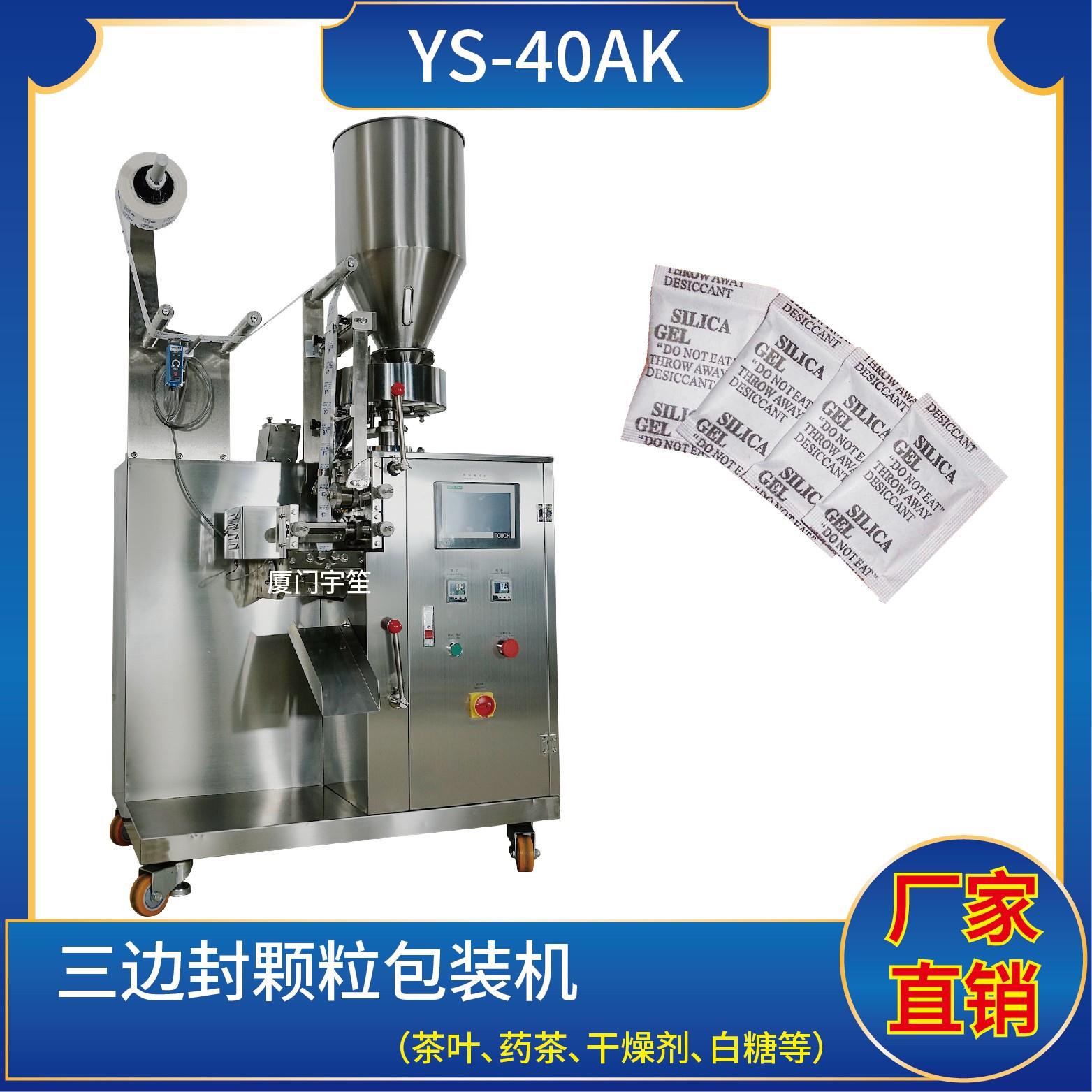 YS-40AK 三邊封顆粒自動包裝機特 點 1、適用于方便面行業(yè)湯包,干燥劑,沖劑,碎茶等小顆粒狀物品包裝。2、可自動完成制袋、計量、充填、封合、分切及計數等功能。3、包裝材料:茶葉濾紙、復合膜、無紡布。封口方式:三邊封技術參數 計量范圍:10 - 40 g(0.6 ~ 33 ml)制袋尺寸:長 ( L ) : 40 - 110 mm …