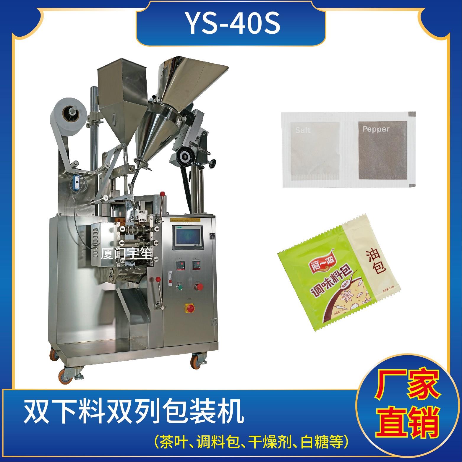 YS-40BK 背封顆粒自動包裝機特 點 1、適用于方便面行業(yè)湯包,干燥劑,沖劑,碎茶等小顆粒狀物品包裝。2、可自動完成制袋、計量、充填、封合、分切及計數等功能。3、包裝材料:茶葉濾紙、復合膜、無紡布。 封口方式:背封技術參數 計量范圍:10 - 40 g(0.6 ~ 33 ml)制袋尺寸:長 ( L ) : 40 - 110 mm …