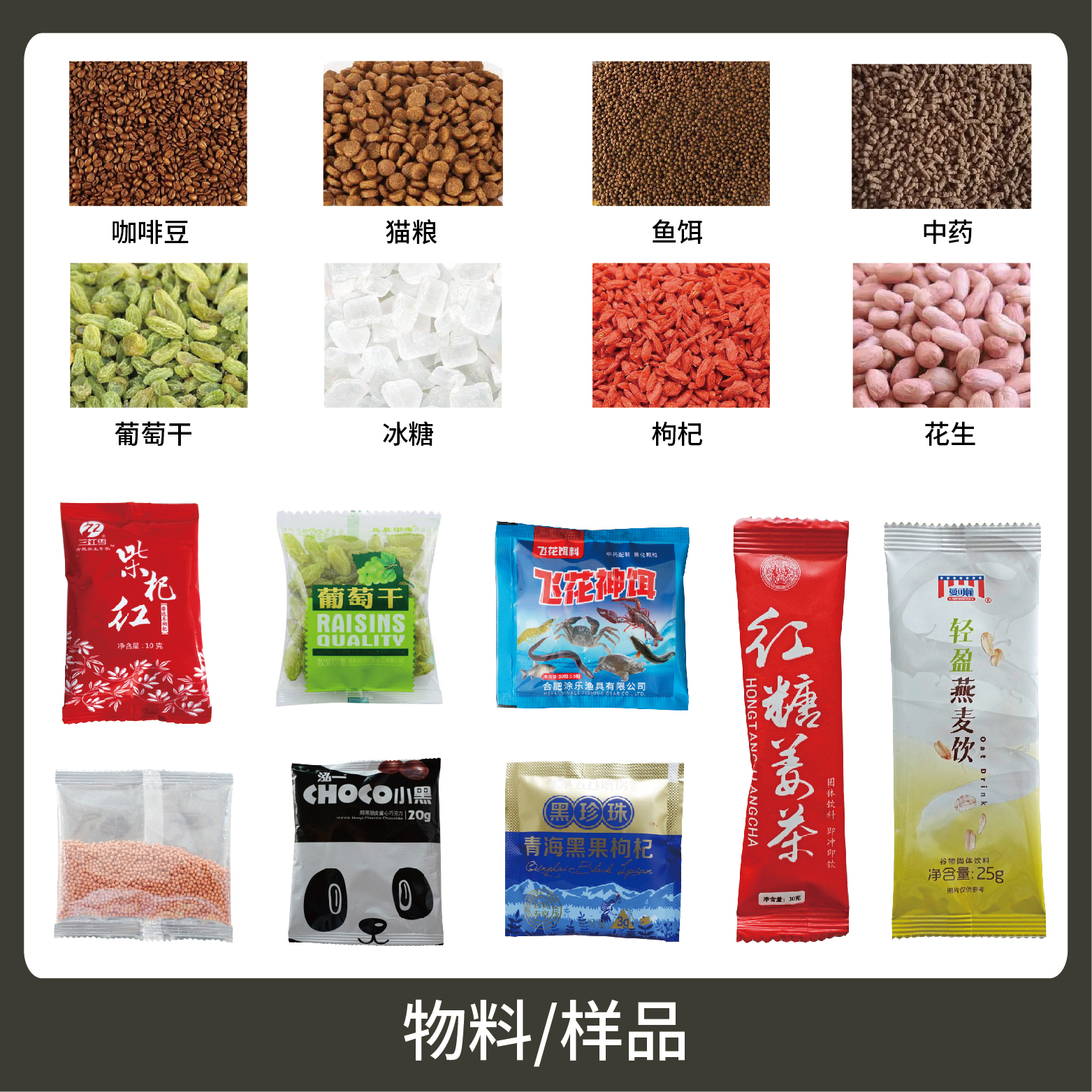 1、適用于食品、醫(yī)藥、化工、化妝品行業(yè)中顆粒、粉劑、液體、醬料等物品的計量包裝,如:干果、種子、辣椒面、咖啡粉、谷物粉、辣椒油、牛奶等。