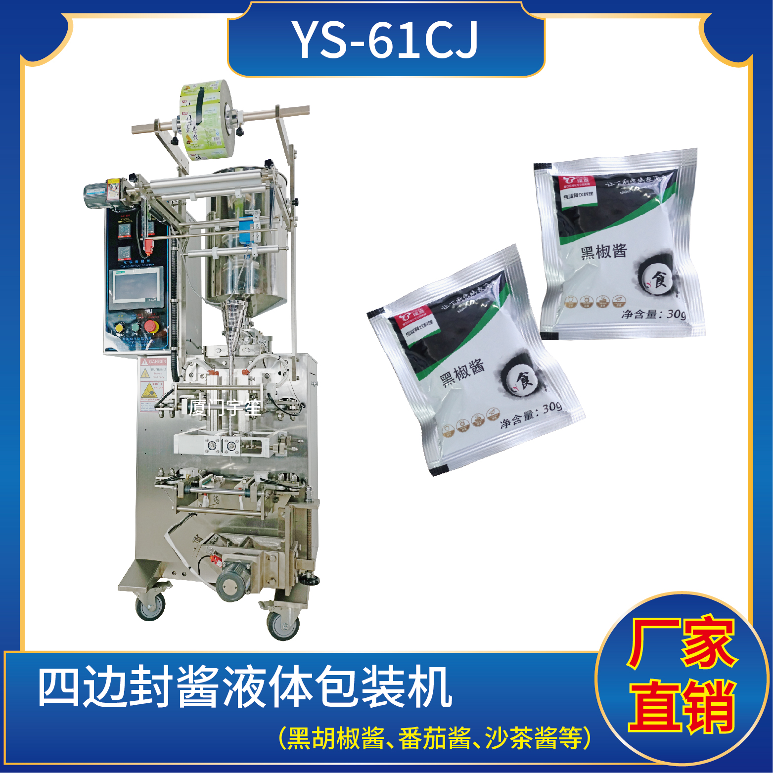 1、適用于食品、醫(yī)藥、化工、化妝品行業(yè)中液體、醬料物品的計量包裝,如:黑胡椒醬、辣椒醬、番茄醬等。