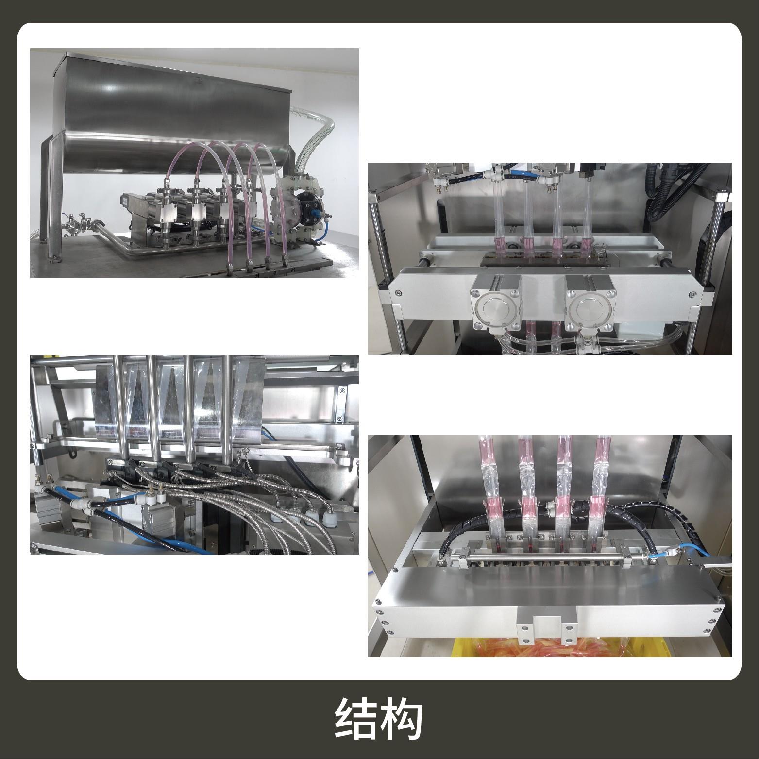 適用于各行業(yè)中酵素、果汁、漱口水、洗護用品、染發(fā)劑、化妝品小樣等醬料、液體物品的多列異形袋計量包裝。