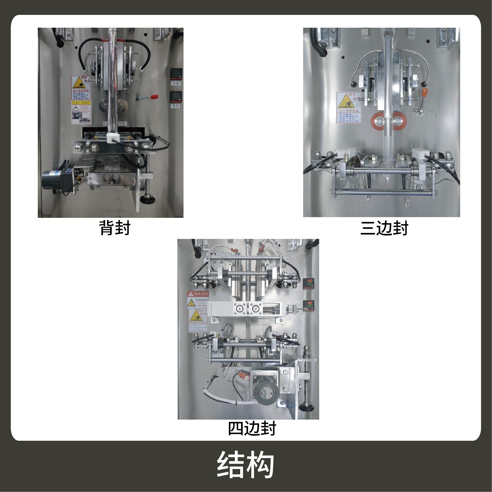 3、觸摸屏操作,PLC 控制,驅(qū)動步進電機控制袋長,性能穩(wěn)定、調(diào)整方便、檢測準確。智能式溫控儀,PID調(diào)節(jié),保證將溫度的誤差范圍控制在1℃以內(nèi)。
